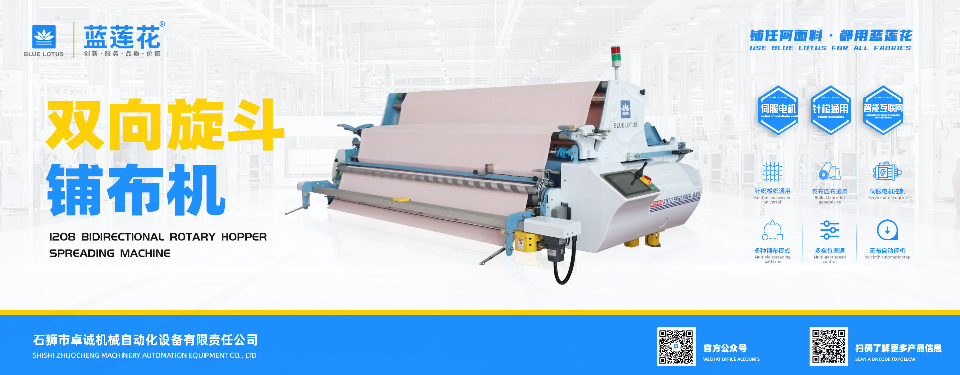 我司結(jié)合市場自主研發(fā)的藍(lán)蓮花品牌拉布機擁有多項自主專利技術(shù),機器以小巧多功能易操作低維護為特點,為業(yè)界提供性價比機型; 藍(lán)蓮花品牌拉布機以實用質(zhì)優(yōu)為特點自投產(chǎn)以來便在國內(nèi)贏得市場廣泛認(rèn)可。